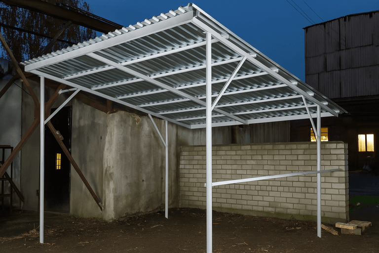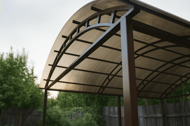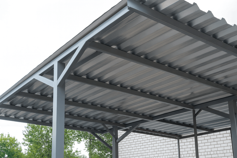 Изготовить навес из профильной трубы можно в короткие сроки — технология позволяет точно рассчитать нагрузки и обеспечить надежность конструкции. Такие навесы подходят для маленьких участков и просторных парковочных зон.