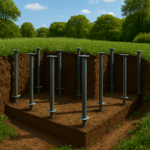 Свайно-винтовой фундамент — это надежное решение для маленьких и просторных объектов, особенно при сложных грунтах и высоком уровне грунтовых вод. Мы предлагаем строительство свайного фундамента под ключ с соблюдением всех технологических требований и СНиП.